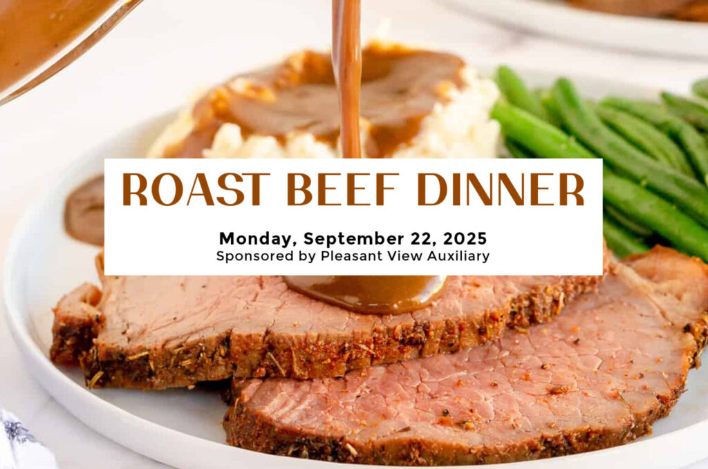 Sei’s Catering Roast Beef Dinner sponsored by the Auxiliary of Pleasant View Communities, Tickets available until Sept. 12 online or stop by the main reception desk, Dine in at the new Kreider Farms Cultural Center or take out.