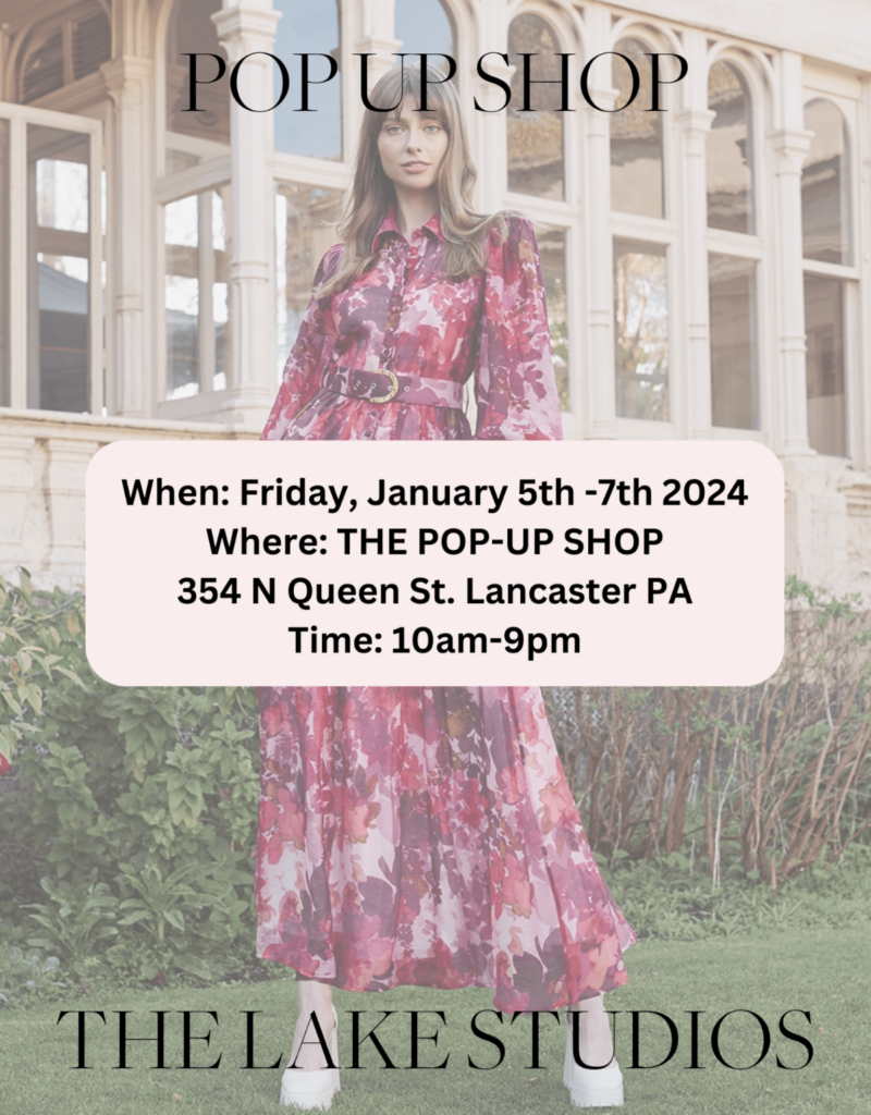 The Lake Studios is a women’s clothing boutique owned by Lancaster County Native Emma Whiteside. We will be holding our very first pop up shop in Lancaster City. There will be tons of beautiful women’s clothes and accessories to shop from!