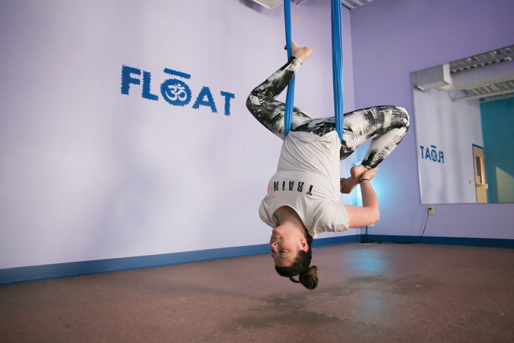“Float Yoga kind of counterbalances all the other stuff. It helps to alleviate some of the stress from my body by stretching,” she states. “I was in a car accident a couple of years ago, where I had a herniated disk, so it helps to stretch out that lower lumbar where I feel pain from time to time. I also enjoy the stress relief aspect of it.”