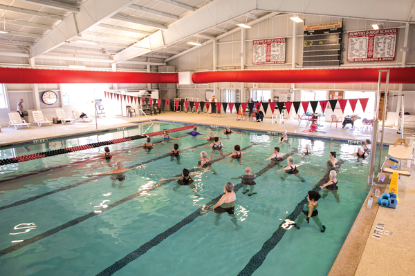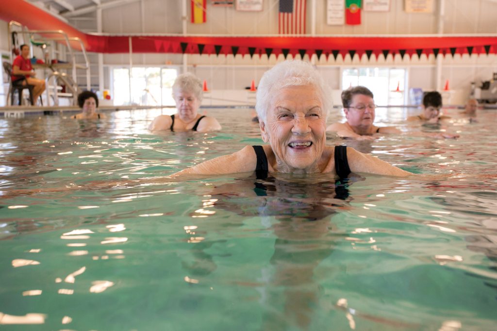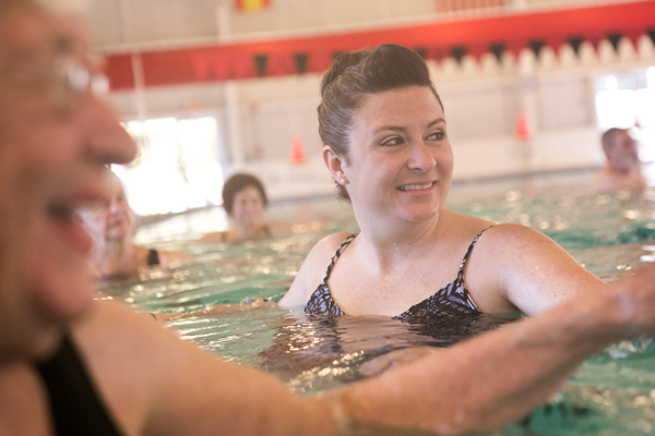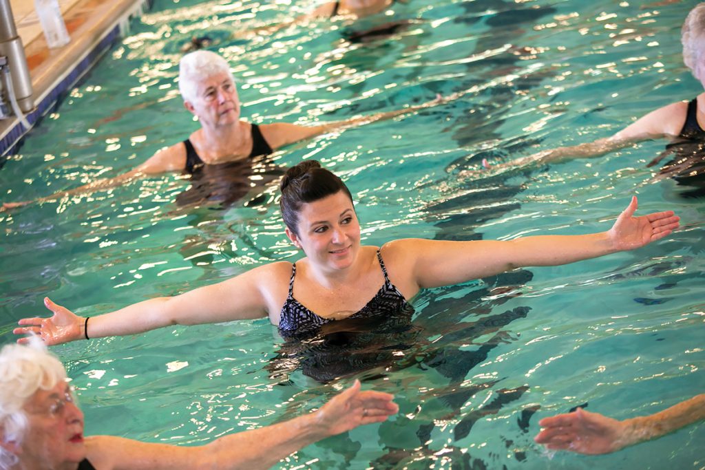 “We started this program roughly about 10 years ago, and it’s mainly for stretching, balance and for people who might be recuperating from hip surgery or a knee replacement,” Louise shares. “Our older clientele, who still want to keep exercising, find that the water is very adjustable to them, and they can really move in the water. That’s what they want to do, they just want to mainly keep on moving.”