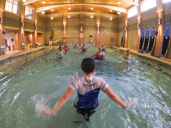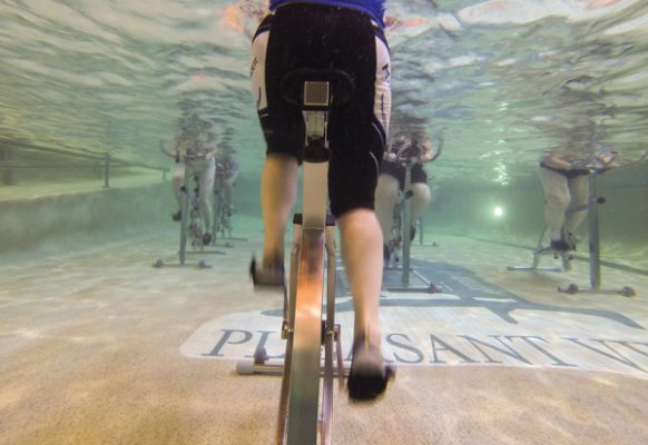 When I first arrived at Pleasant View, I was greeted by Amanda Hall, the sales and marketing manager, and Haley Brumbach, the fitness center manager. Before stepping foot into the liquid gym, I needed two things: aquatic footwear and a few tips about the bike. (Please note: Covered-toe, supportive footwear must be worn for the hydro classes; for safety reasons, shoes with laces are not recommended.)