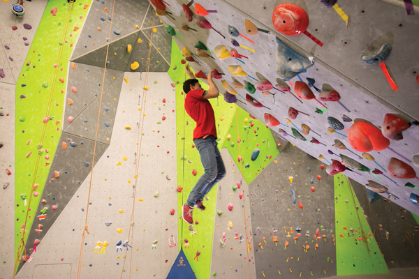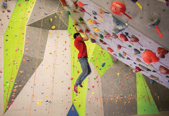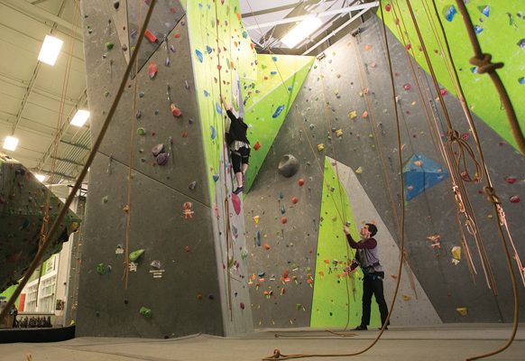 “Just have fun with it. Don’t get discouraged immediately. There’s always something to advance to,” Adam says. “There’s something for everyone. It’s definitely worth trying. A lot of people think that climbing is for experienced rock climbers only in a facility like this, but we cater toward beginners and first-timers, too.”