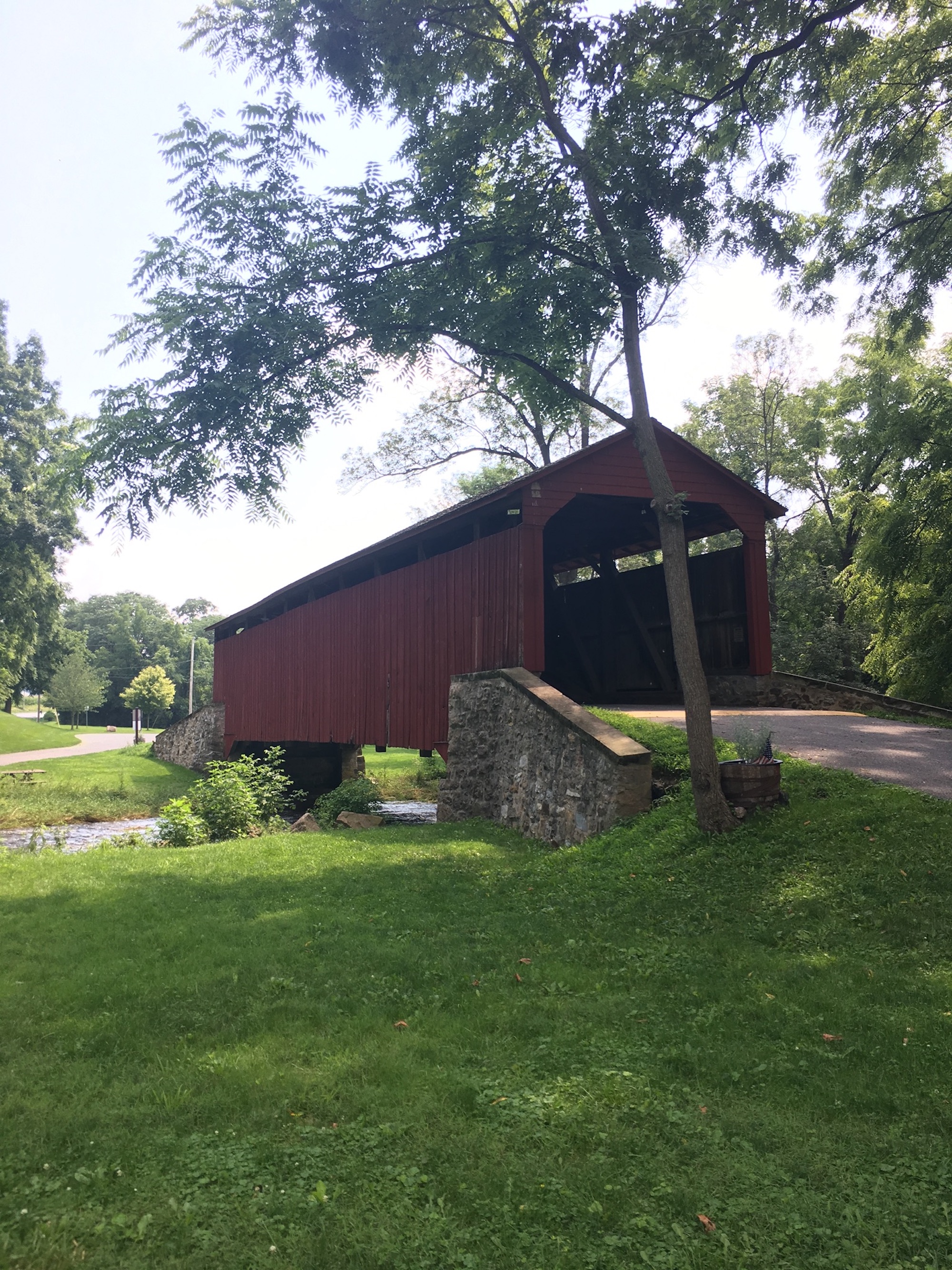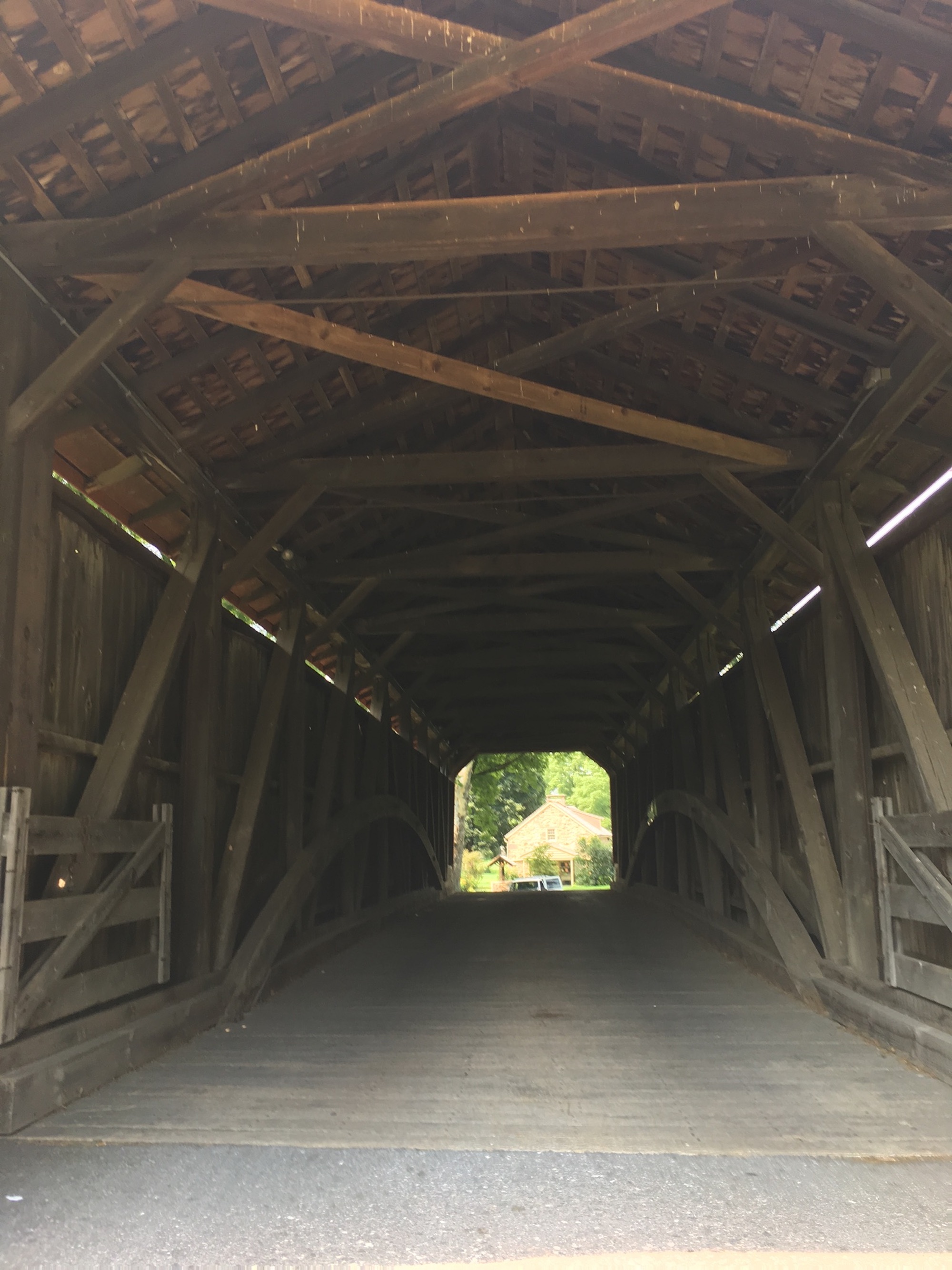 It was time to leave Elizabethtown, and we began our drive to Narvon, passing the fabled Blue Ball sign and well-reputed Shady Maple Smorgasbord along the way. This was the stop I was most excited for, having been told to expect a covered bridge. We arrived at Historic Poole Forge, and sure enough, there was the red covered bridge which I had so coveted. The fascination had begun a few months prior when I’d impulsively bought a painting of one at The Pottery Works and realized that it would be ridiculous to have lived in Lancaster for the better part of three years and not have seen one in person.