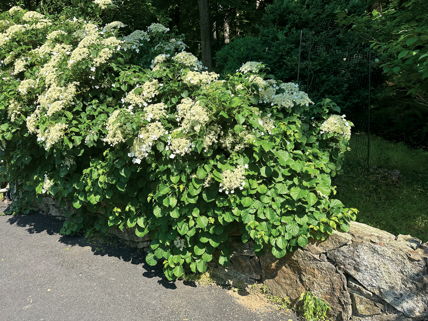 Hydrangea anomala subsp. Petiolaris, which is commonly known as climbing hydrangea, is a climbing vine that will grow well in part or full shade. It’s slow to establish but matures into a vigorous, sprawling, deciduous woody vine that clings and will climb, typically reaching 30-40 feet long. Horizontal lateral branching often extends several feet beyond supporting structures. Unsupported vines sometimes will grow in the form of a mounding shrub, reaching to 3-4 feet tall and sprawling along the ground like a ground cover.