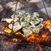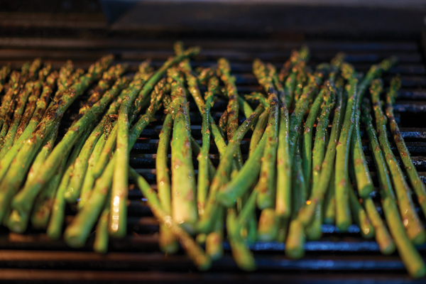 Using the tripod over the fire, raising and lowering the grate changed the quantity of heat relative to the coals for an even, yet not overdone, cook and a beautiful char. Smashed potatoes grilled atop a cast-iron casserole or griddle were prepared using copious amounts of butter. Local asparagus was grilled simply using olive oil, salt and pepper.