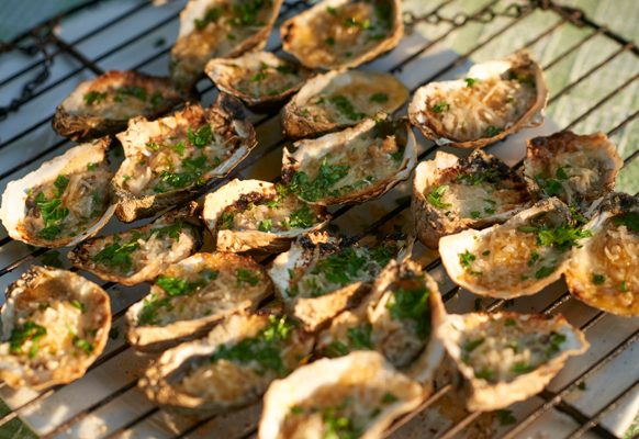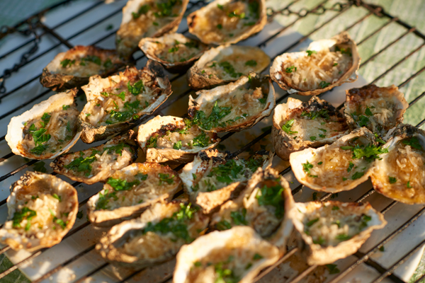 Once you’ve devoured the oyster, you can dip grilled Italian bread into the shell to soak up a delicious soup of smoky, savory ingredients.