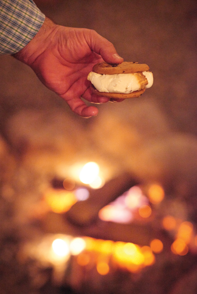 For dessert, s’mores got an upgrade. Chocolate-chip cookies replaced graham crackers, and dark chocolate, jumbo-sized marshmallows and peanut butter were added. Peanut butter cups make for another excellent alternative to milk-chocolate bars, eliminating the need for a peanut-butter jar.