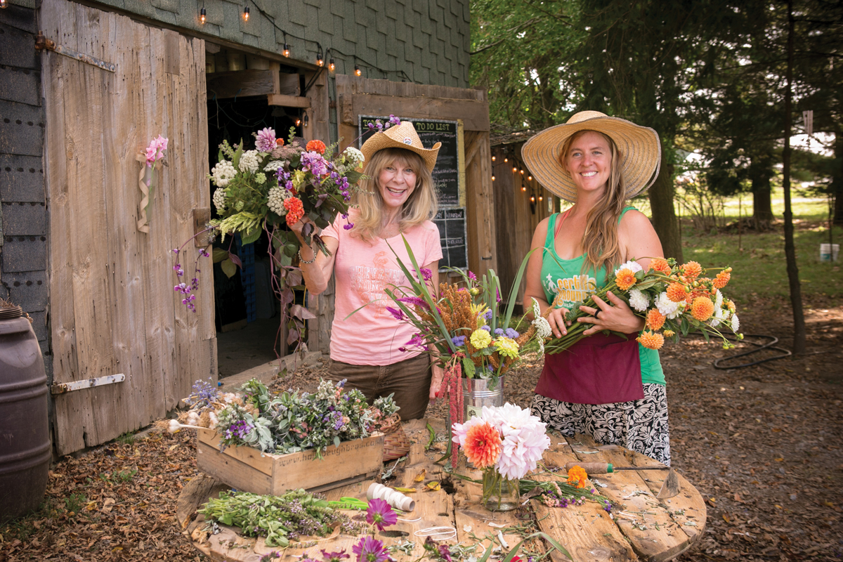 While Victoria and Elisabeth are technically second cousins, they say their relationship is more akin to aunt and niece due to their age difference. Creative talents, a love of the land and a concern for the environment have guided them in circuitous routes that finally merged on a plot of land south of the city. “We always wanted to do something together,” says Victoria. That “something” is Blumen, which combines the flowers and herbs that Elisabeth grows through Lancaster Farmacy, a business she launched with her partner, Casey Spacht, and Victoria’s background in floral design.