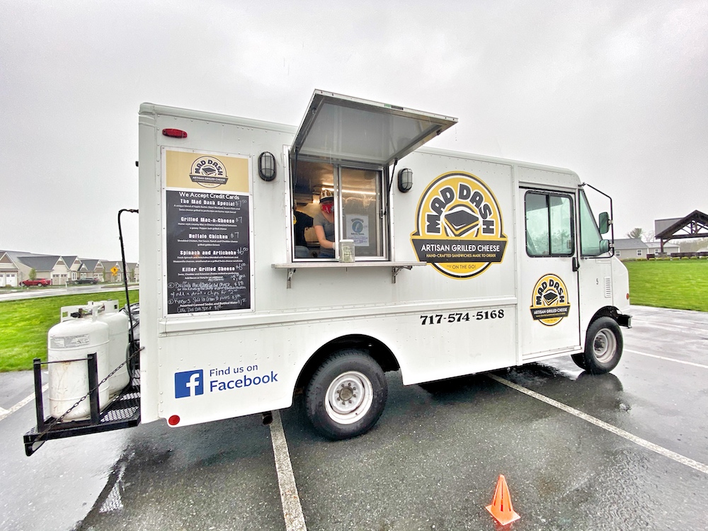 Mad Dash Concessions specializes in artisan grilled cheeses, including mac and cheese stuffed, spinach artichoke, and buffalo chicken.