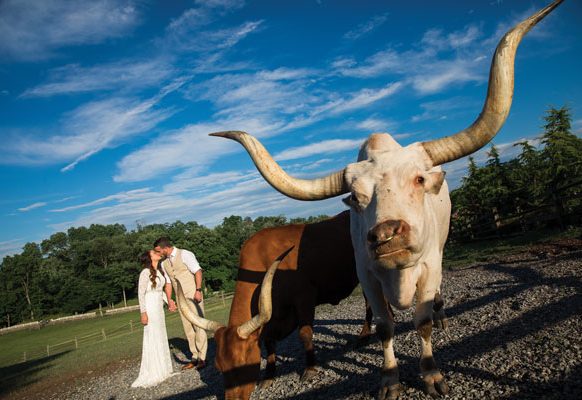 Lauren remarks that in all her life, she’s never attended a wedding in which guests could mingle with horses, donkeys, Texas longhorns and a pig.