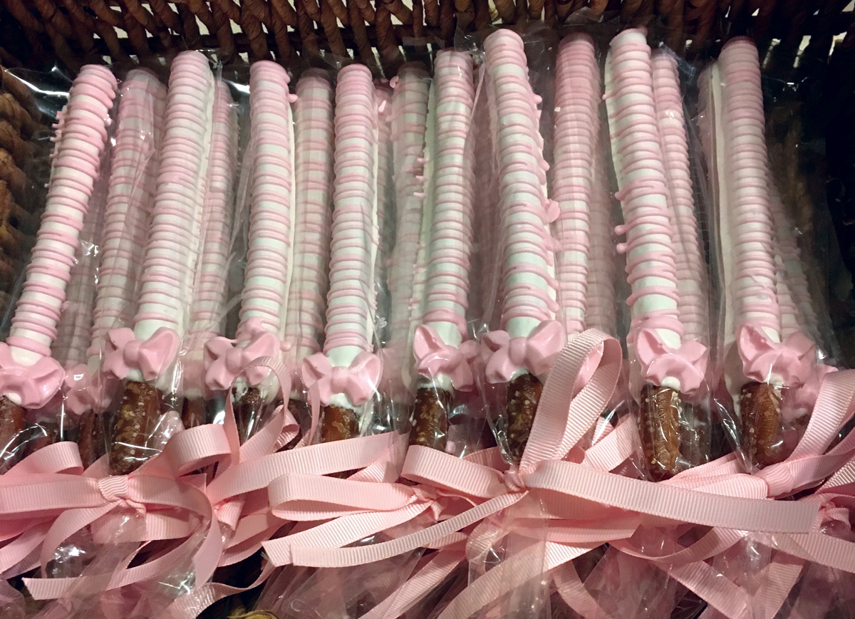 What’s a sprinkle? Just as it sounds, it’s a lighter version of a shower! A nifty little trend to celebrate the second (or third) baby, a sprinkle usually entails a smaller guest list of close friends and relatives. For Ashley Garrett’s second baby, her mother, Cindy Singer, chose the Zinzendorf Room at Moravian Manor Retirement Community to host 20 guests for a brunch sprinkle. Family members wore pink to honor the expected baby girl, and guests had the option of enjoying alcohol-free “Momosas,” or the traditional cocktail version of the mimosa, sparkling wine and orange juice.