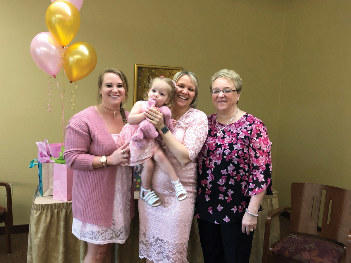 Three generations of Singers – left to right, Aunt Alicia, big sister Addison Garrett, mom-to-be, Ashley (Singer) Garrett and Nanny Cindy – were joined by family and friends at a sprinkle that was held at Moravian Manor in Lititz. Pink was the theme and dress code for the party.