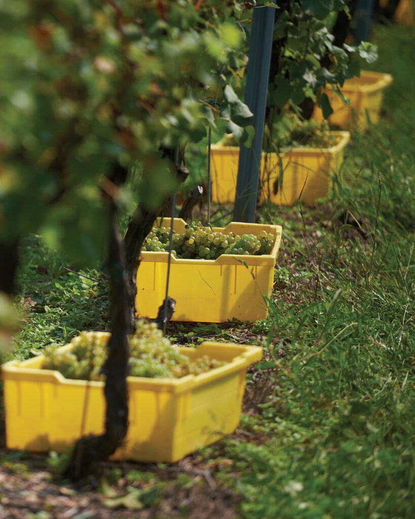 Jan’s experience told him they had a narrow window of a few days to harvest – after the water seeped deeper into the ground from the previous rains and before the tropical rains from the remnants of Ida arrived. Gathering as many people as they could to hand-pick the grapes, Waltz harvested five acres of grapes from 12-year-old vines bearing Sémillon and Sauvignon Blanc grapes. Incredibly, they did it in one day.