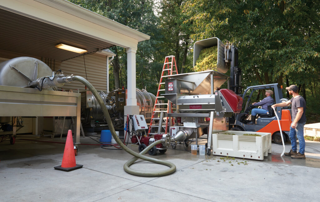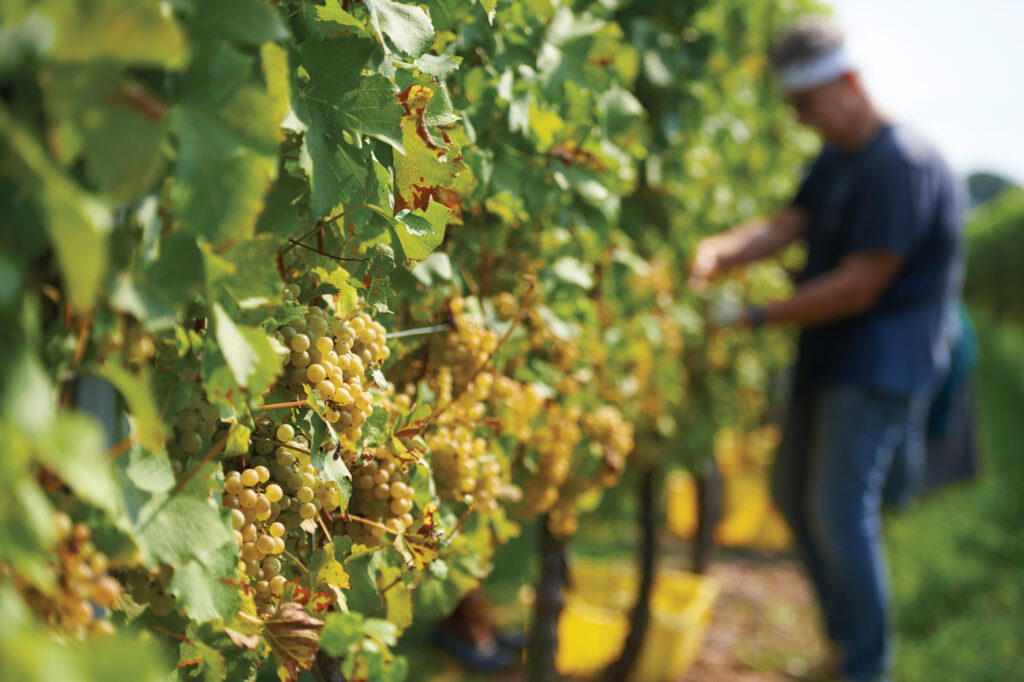 Days before a storm was forecasted to blow across the county, Waltz Vineyards was buzzing with activity. With the ground saturated from two previous storms, the coming rain had the potential to cause grapes to burst on the vine, thus ruining the harvest. Poised on a bucolic hillside in Manheim, the farm’s rolling fields were filled with vines that would need to be hand-picked immediately. The entire season and grape supply for the 2021 vintage hung in the balance.