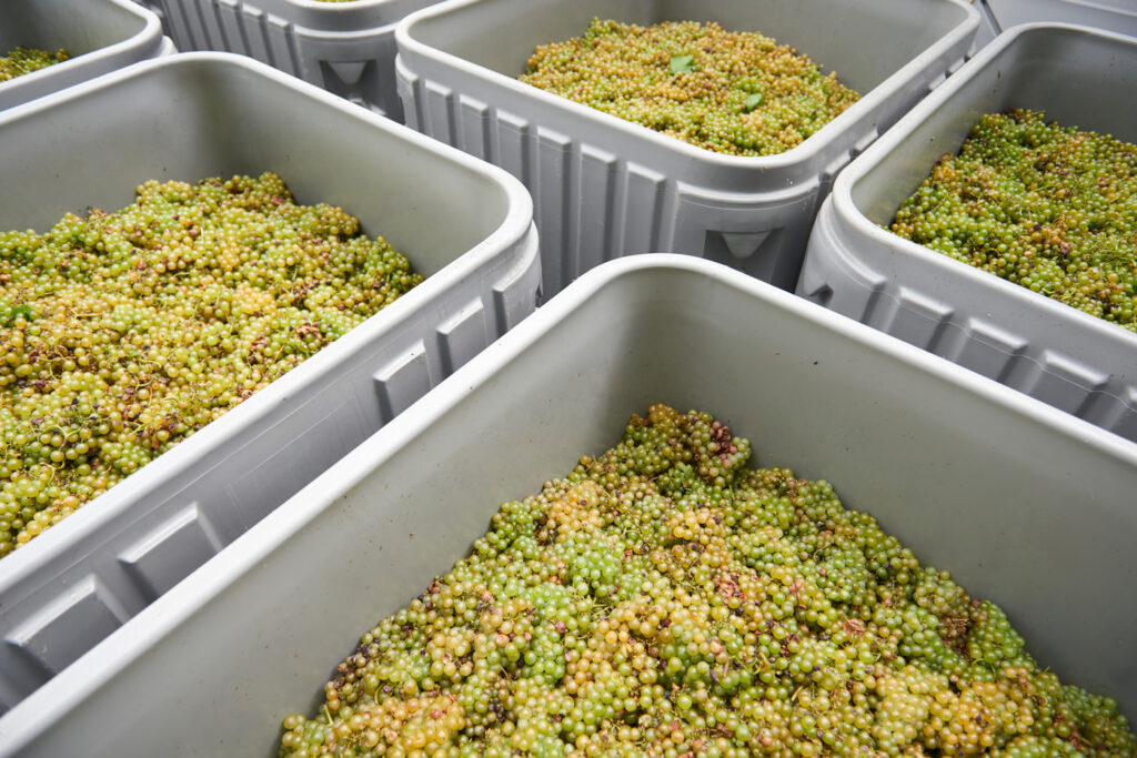 The rolling hillside was dotted with roughly 30 workers, who hand-picked 1,000 pounds of grapes every 15 minutes, or two tons per hour. The grapes were inspected and then placed in yellow crates, where they awaited Jan and his tractor-wielding food-grade containers. Bursting with juice and the sweet aromas of pears, the delicate grape skins had already started to break in the containers. According to Jan, had these grapes been destined for another location, they could only be transported by being “separated into small, stacked bins” that would allow for air flow and a better distribution of weight. Additionally, they would have had to be nearly frozen to ensure their safe travel.