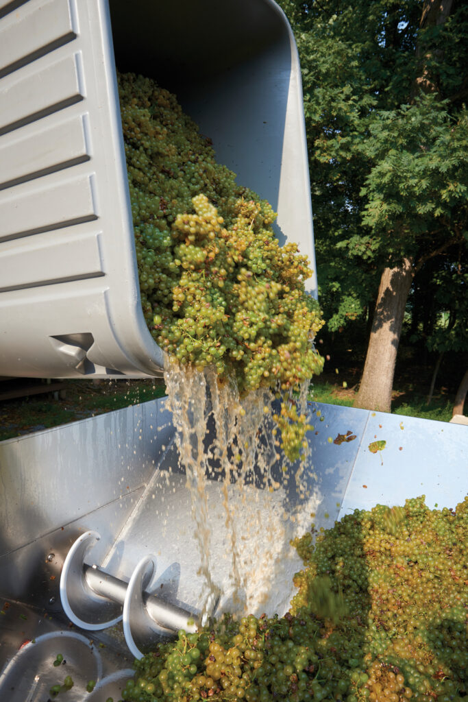 In 2021, Sémillon grapes were a bumper crop for Waltz, thanks to a narrowly averted disaster. In mid-September, the soil was saturated after two heavy rainstorms, pushing the grapes on the vine to the brink of bursting. The remnants of Hurricane Ida illuminated the weather radar and would soon unleash an immense volume of rain over Lancaster County. If the Sémillon grapes had to endure yet another heavy rain at the end of the season, the berries would burst on the vine, spoiling the crop.