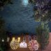 Repurposed “moon rocks” from the canceled 2020 lunar-themed Cosmic Bash were paired with solar-powered, lit-from-within flowers to create centerpieces for tables inside the tent.