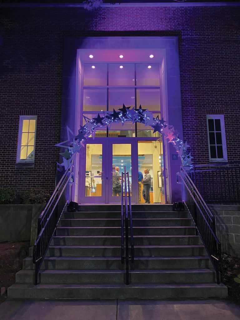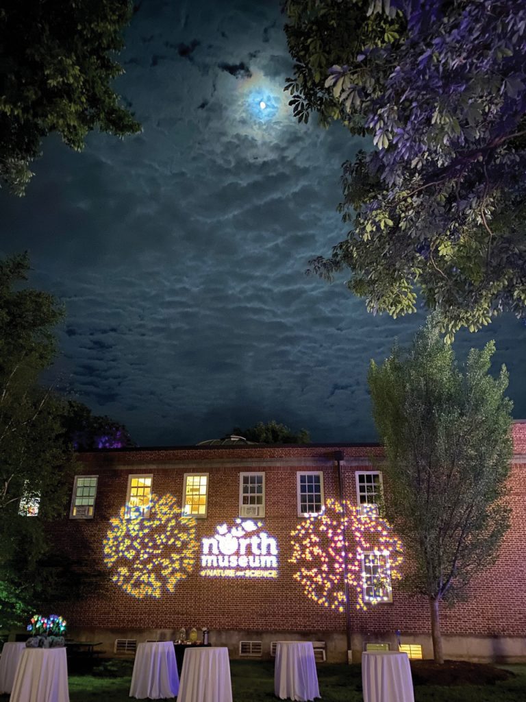 A beautiful late-spring evening sky provided the backdrop for the North Museum’s annual benefit, Cosmic Bash. A wall of the museum served as the backdrop for light projections.