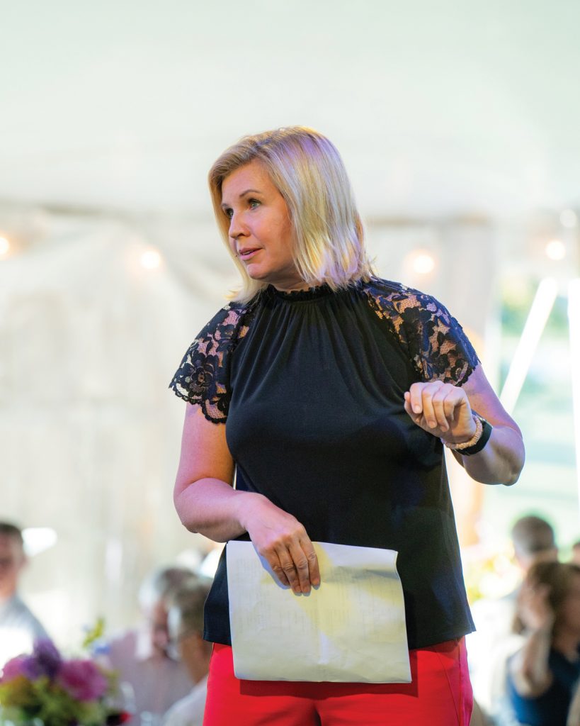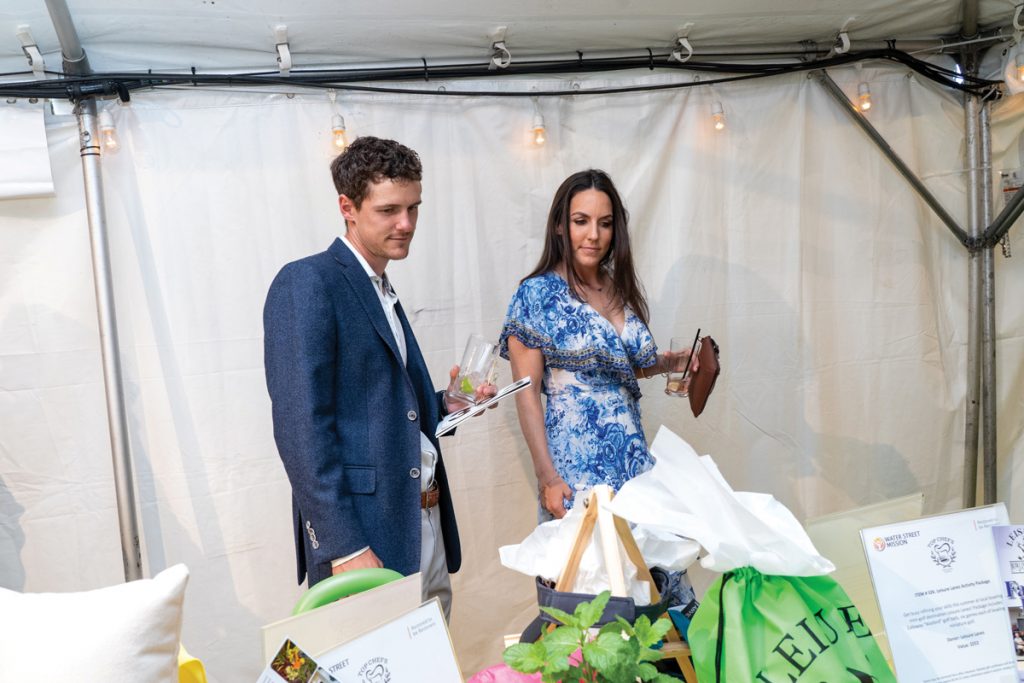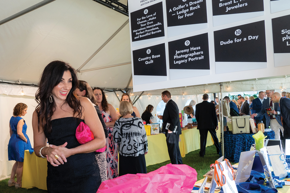 An in-the-round stage in the tent’s center, plus state-of-the-art video screens brought crystal-clear images to all guests in the massive tent, as spirited bidding on one-of-a-kind getaways and dining experiences were auctioned to benefit Water Street Health Services, which provides health, dental and behavioral care to the most vulnerable adults and children within our community.