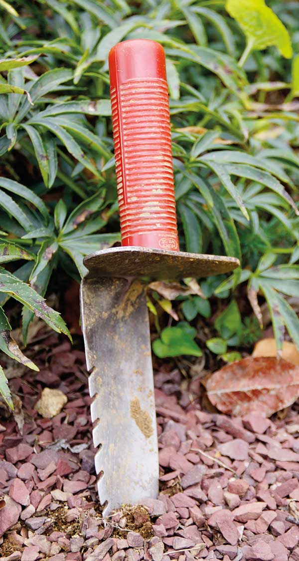 I never go into my garden without my favorite digging tool, the Offset Soil Knife (Item DT 1, amleo.com, $46.49). Every gardener I’ve recommended it to agrees it is indispensible. OK, you can get the cheaper Classic straight soil knife for less than half that price (and I do provide those to my helpers), but the offset design is well worth the extra change, especially for gardeners with small hands. The Offset is more ergonomic and offers extra digging power when slicing into soil. The sharp-serrated edge easily cuts right through roots. It is ideal in my beds since I mulch with stone gravel.