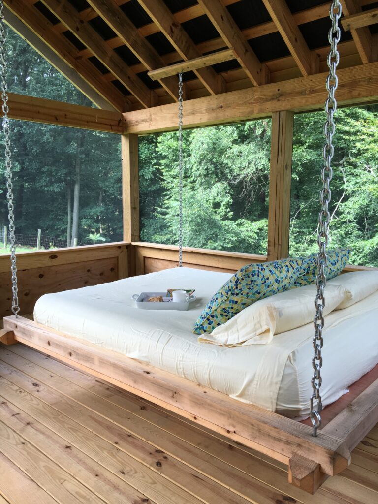 The Fairview Cottage offers guests a cozy bedroom and a screened porch that is perfect for napping.