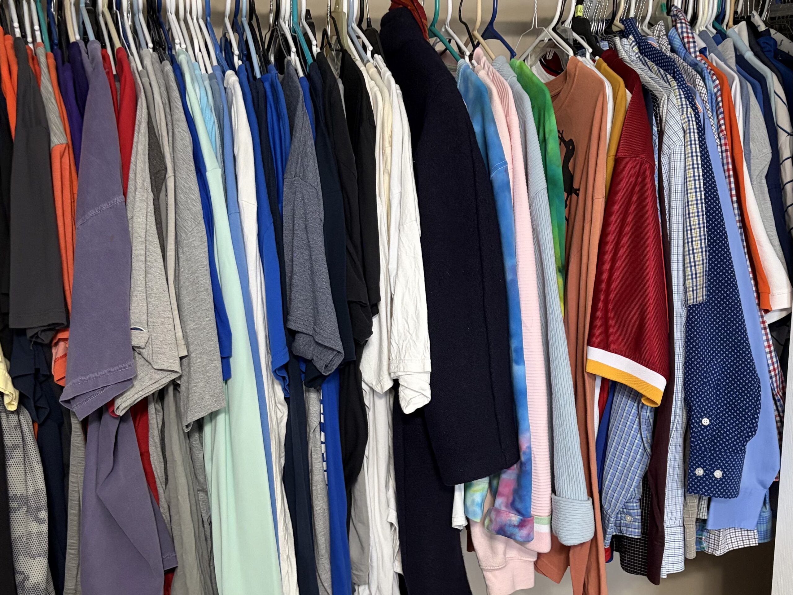 Since Charlie and Jenn only live an hour away from North Carolina’s southern beaches, they receive their fair share of visitors. During the first two days of my Thanksgiving week stay, I took up residence in their very large guest room. It had most of the amenities listed above. The only thing lacking was closet space. The closet is filled with Charlie’s extensive T-shirt collection. Space was at a premium, as were hangers. I was tempted to move some of them to the closet in the hallway that contains his even larger sweatshirt collection, which he has carefully colorized. God forbid I mess up his swath or orange (Clemson), royal blue (Duke) or burgundy-and-gold (Washington football). Oddly enough, when I worked at The Bon-Ton, I was known as the “Queen of Colorizing,” since I was obsessed with keeping the racks of Ralph Lauren, Calvin Klein, Tahari and Michael Kors clothing colorized. Must be genetic! My only problem was the television. I am not good with streaming. I had to keep asking him to get Landman up and running for me.