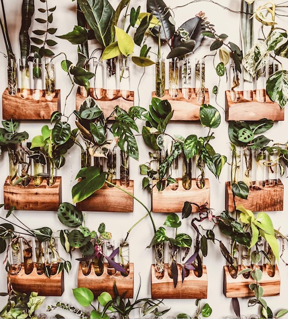 In using plants to decorate a home, Hilton likes to bring a sense of nature indoors by creating levels in which they are positioned, specifically at, above and below eye level. Such a plan helps to “blur indoor and outdoor spaces.” He also likes to incorporate “living walls” into designs. For propagation purposes, he places groupings of what looks like chemistry tubes on walls in which cuttings take root. He also advised that you look at plants as art, in that they bring composition, color and texture to a space.