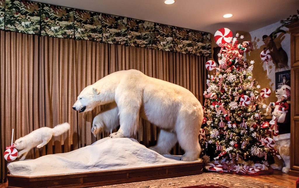 Larry finally agreed to Anita’s suggestion when he returned from a hunting trip that had taken him to within 400 miles of the North Pole and realized the polar bear that would be joining the menagerie would be a tight fit in the rec room. When the crate holding the polar bear arrived, Larry was all the more convinced he needed to heed Anita’s advice. “The crate was the size of a room,” he recalled. For the interim, the crate and its contents were relocated to a warehouse the Martins owned.