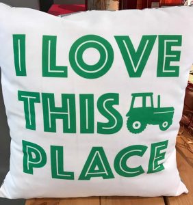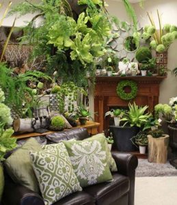At Floral Designs of Mount Joy, you can’t get any “greener” than with plants (both faux and real). Note the throw pillows, as well.