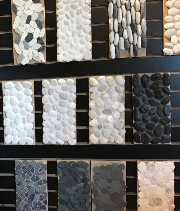 Tile is no longer square! As seen at Martin’s Flooring, styles inspired by river rocks, the ‘70s and the ‘60s.