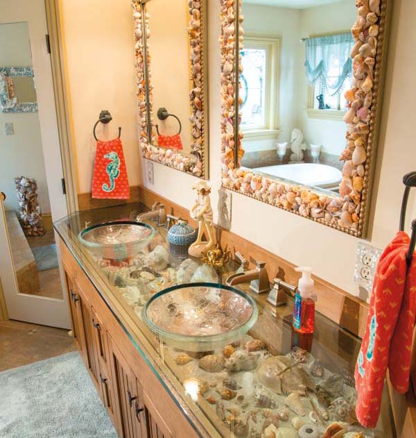Natural elements such as shells add subtle color and texture to this bathroom that was designed by Donald Dale and Andrea and Jim Schopf.