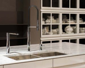 This time-honored metamorphic rock brings a clean look to kitchen counters. “Again, it’s a natural element,” Sheri notes.