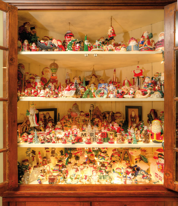 Of course, christmas was the first thing that popped into Ginny’s head as she surveyed the damage. “Paul Davis Restoration came that night,” she recalls. “They put everything that was in the basement up on blocks in order to get it out of the water.” The attic was destroyed. According to a fireman on the scene, the 50 trees stored there had melted into a plastic mess. She instinctively knew her vintage ornaments were goners, as were her 72 Byers Choice Santas and carolers. “I lost a lot of antiques, too,” she says.