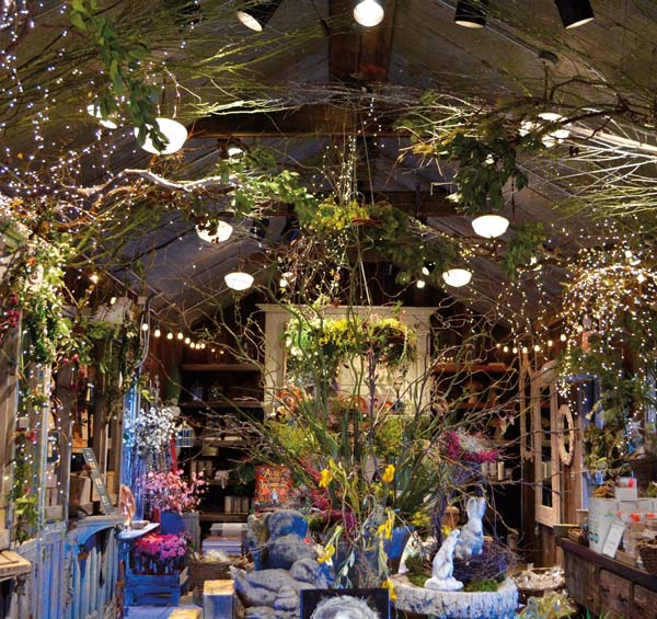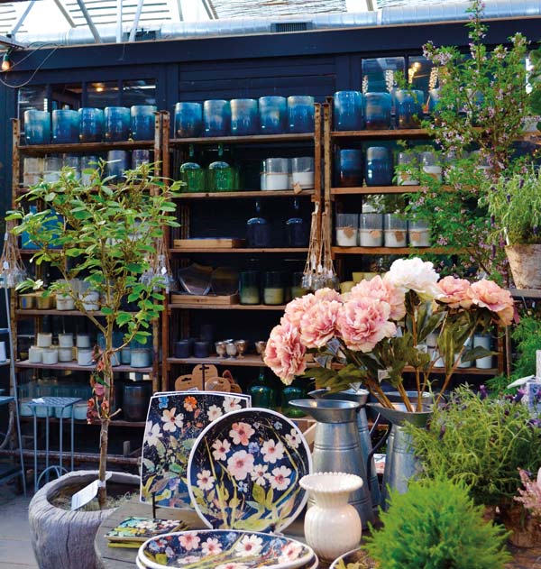 Your eyes leap from tinted glass candles flickering among the flowers to preserved tree branches wrapped with copper wire tea lights and settle on hand-painted kitchen ware and artfully stitched linens. You see light from above and around you, deep-green leaves and warm-pink petals. You smell candles of lavender and rose. You hear an acoustic guitar strumming some sleepy tune over the speakers. And, you know what you do then? You smile.