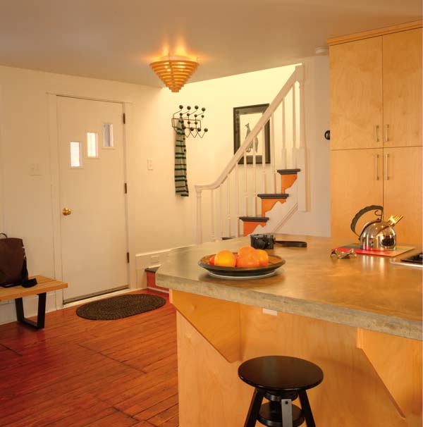 Matthew was determined to do much of the work himself, figuring he’d devote nights and weekends to the project. His first goal was to open up the claustrophobic first floor, which was divided into three small rooms. “I just went in and started taking down walls,” he explains. In doing so, a summer beam – the precursor to load-bearing walls – was revealed. “It had been plastered over,” Matthew explains of the steel-like beam that had been carved from an American chestnut tree. Matthew deemed it a keeper.