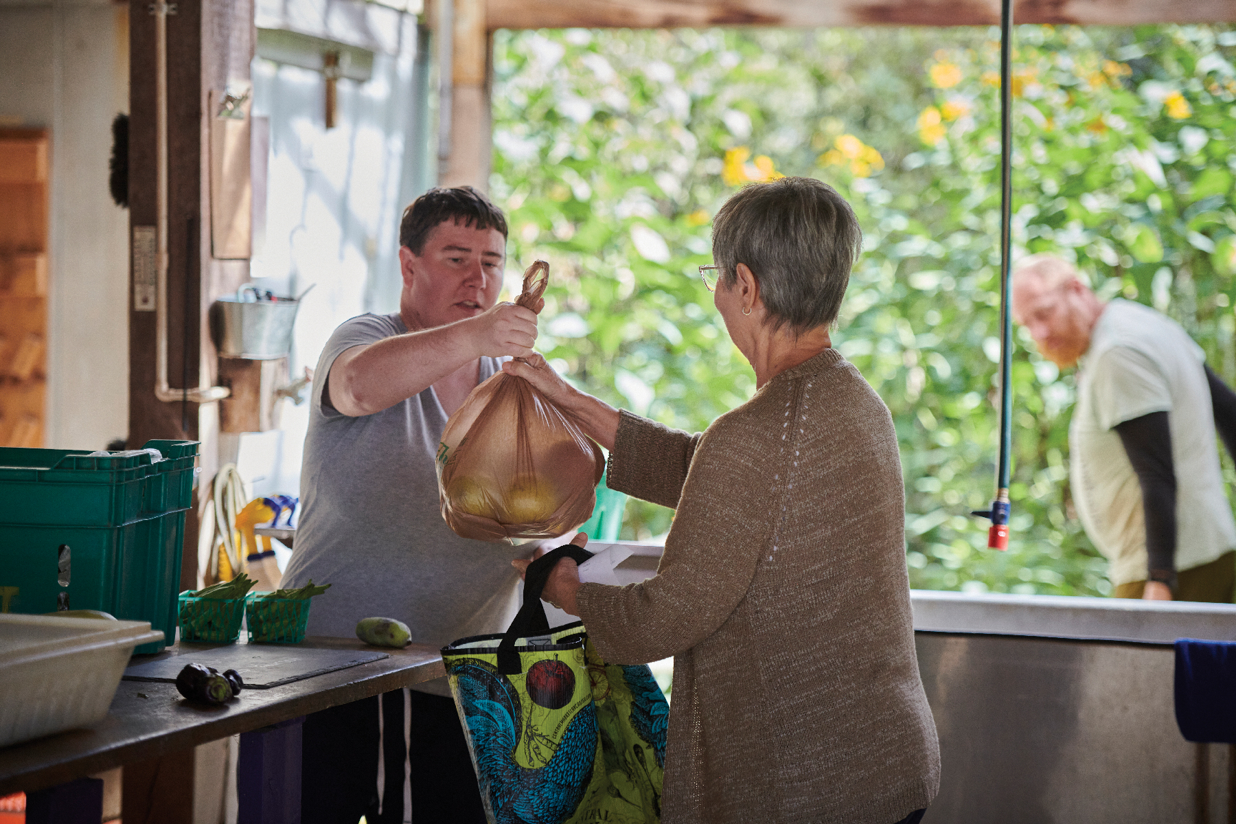 Homefields’ work philosophy is atypical of most job programs for workers with physical or mental disabilities, in that tasks are often menial, repetitive, and one part of a larger process without the gratification of a conclusion. Little to no consideration is given to the interests or unique capabilities of workers. “They’ve been told, ‘Sort this hardware, tear down this box, but they don’t know where they are in that process,” says Allison. “They’ve never seen the whole process. They don’t know the importance of their role.” Homefields creates opportunities for supported farm workers to try out various roles and offers them choices. Because the needs of the farm change on a daily basis, so too do the choices a worker can make. One day, they might opt to weed, another to wash or pack vegetables.