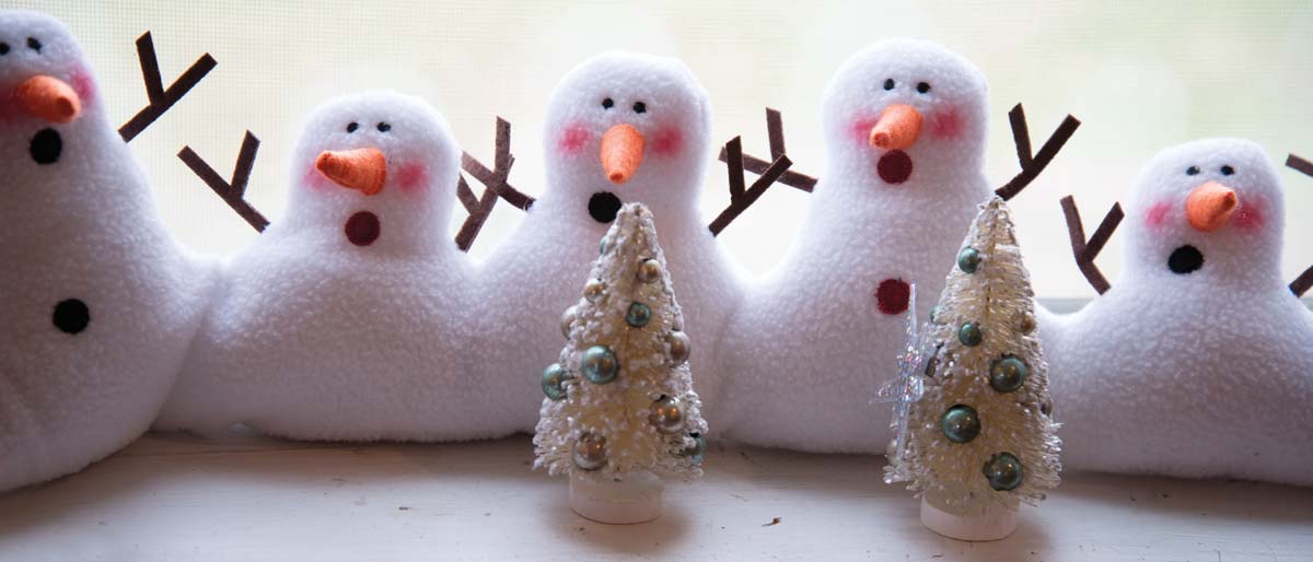 Dawn Fisher’s tree, which typically goes up the week of Christmas because she is so busy working on clients’ homes or places of business, pays homage to the past in that it’s aluminum. However, it’s also very 21st century due to its fullness, the fact that it can be strung with lights, and its “needles” are a combination of silver and black, which adds texture and dimension. Last year, Dawn decorated it with a color that has become a hot holiday hue, turquoise. Pops of red were delivered with faux amaryllis blooms. “I kept it up through February,” she reports. Indeed, once she removed her Santas, the room took on a winter theme, as the snowflake-lined windows and snowmen demonstrated their staying power.