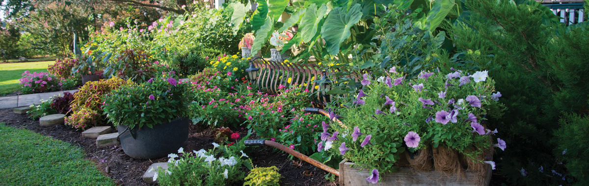 Shirley is also a fan of garage sales and has mastered the art of repurposing her purchases. Antique garden art – in the form of watering cans, crocks and ferneries – perfectly complement the house and gardens. “It’s just what I enjoy,” she states.