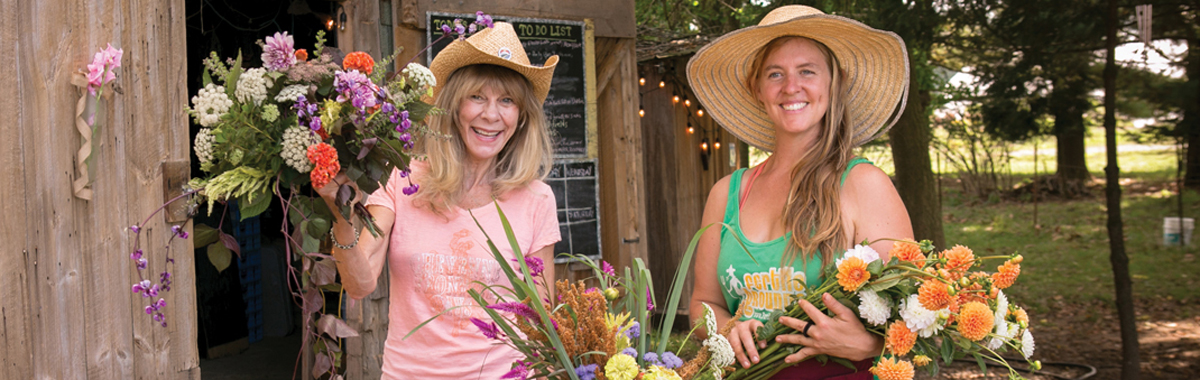 While Victoria and Elisabeth are technically second cousins, they say their relationship is more akin to aunt and niece due to their age difference. Creative talents, a love of the land and a concern for the environment have guided them in circuitous routes that finally merged on a plot of land south of the city. “We always wanted to do something together,” says Victoria. That “something” is Blumen, which combines the flowers and herbs that Elisabeth grows through Lancaster Farmacy, a business she launched with her partner, Casey Spacht, and Victoria’s background in floral design.