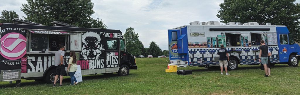 As seen at a recent pop-up event at Wyndridge Farm in Dallastown, food trucks from Baron Von Schwein and York-based Roadside Grille, which specializes in quesadillas and burgers, set up shop. Wyndridge is sponsoring a Pop-up Beer Garden every weekend through September 29 at Kissel Valley Farm in Lititz. Photo by Sean Kennedy.