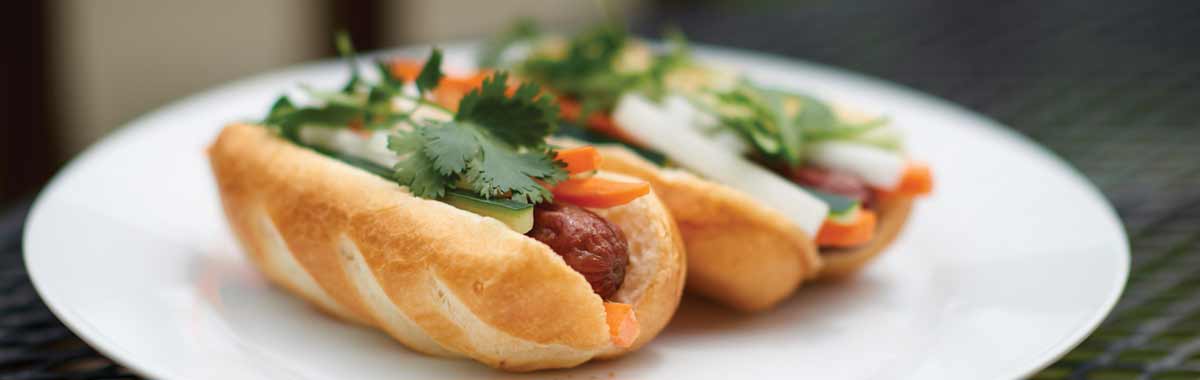 As for the toppings, the sky’s the limit. You could even create a toppings bar for your next barbeque. However, Brian Averna, who served as executive chef for the Sara Lee Corporation for 13 years, stresses that you need to “dress the dog and not the bun.” He suggests that you start with wet ingredients (mustard, chili, ketchup), then move to chunky ingredients (onions, peppers, relish), then add shredded ingredients (cheese) and finally add the finishing touch of spices.