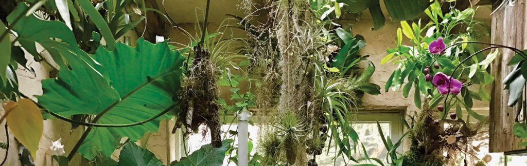 Jim’s fascination with plants continues inside his home. His interest in orchids has given way to low-maintenance specimens, notably air plants, which are classified as epiphytes, meaning they grow without dirt. Instead, air plants attach themselves to rocks, trees, shrubs or the ground with their roots. They fit nicely into those tear-shaped hanging glass containers that are all the rage. They are native to the southern United States, Mexico, Central America and South America. “They’re just kind of neat,” he says. “Their major culprit is that people try too hard and over-water them. The same goes with cactus and succulents.” In Jim’s estimation, they almost qualify as no-maintenance plants.