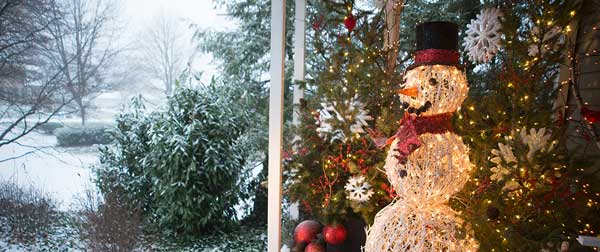 Once again, Tim incorporated items the homeowners had purchased, including the metal snowmen they found at Cherry Acres in Lititz and the door wreath he embellished with greens.