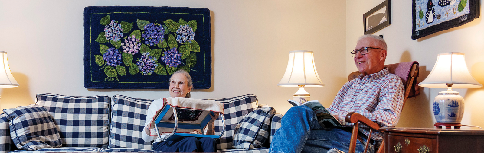 Mary’s rug-hooking projects are on view in the living room, as are the shore-bird carvings the Reiders have collected during trips to New England.