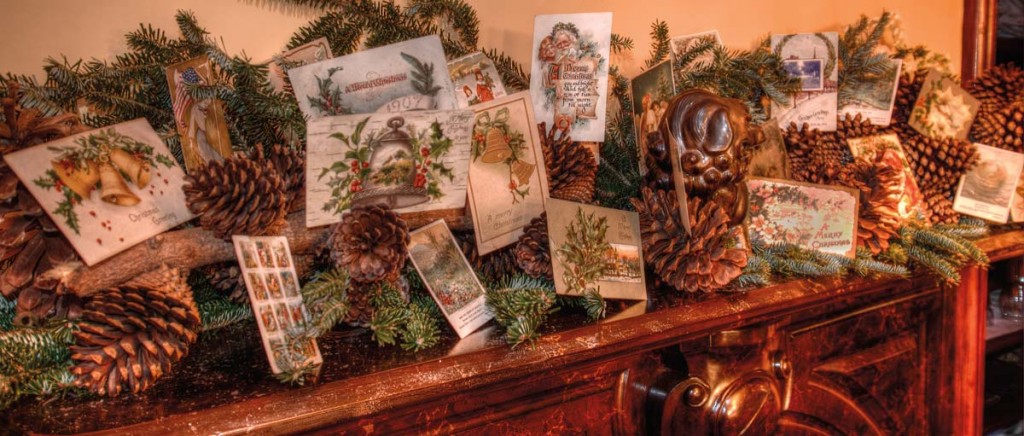 For this mantle-top display, Dawn utilized Jeanne’s collection of cards that date to the early 1900s.
