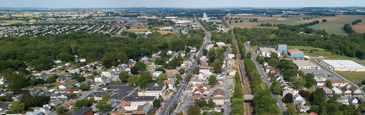 Mount Joy, looking east toward Lancaster. Originally a series of villages, they became one town – Mount Joy – in 1851. Florin joined the fold in 1963.