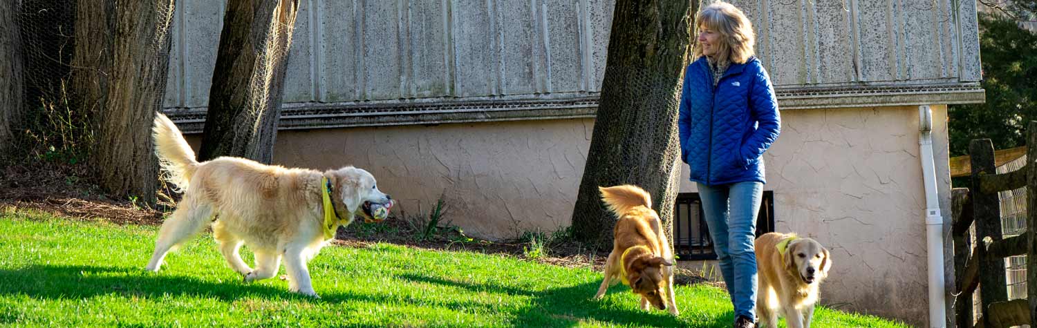 Karen, who grew up in the Ephrata area, has always loved animals, notably dogs and specifically golden retrievers. “Somebody warned me that once you have a golden, nothing else will ever do,” she says. Karen and her husband, Bill, discovered that to be absolutely true and have welcomed a succession of goldens into their home, including two tripods, the most recent of which is 6-year-old Kylee. “We adopted her through the Delaware Valley Golden Retriever Rescue,” she says of the velcro dog she describes as being “a great snuggler.” As for the breed, Karen relates, “They’re just easy dogs to love and live with. They are very people-oriented and love to please.” In addition to Kylee, Karen’s pack also includes her walking buddy, 7-year-old Kody, and Zeke, who is 11.