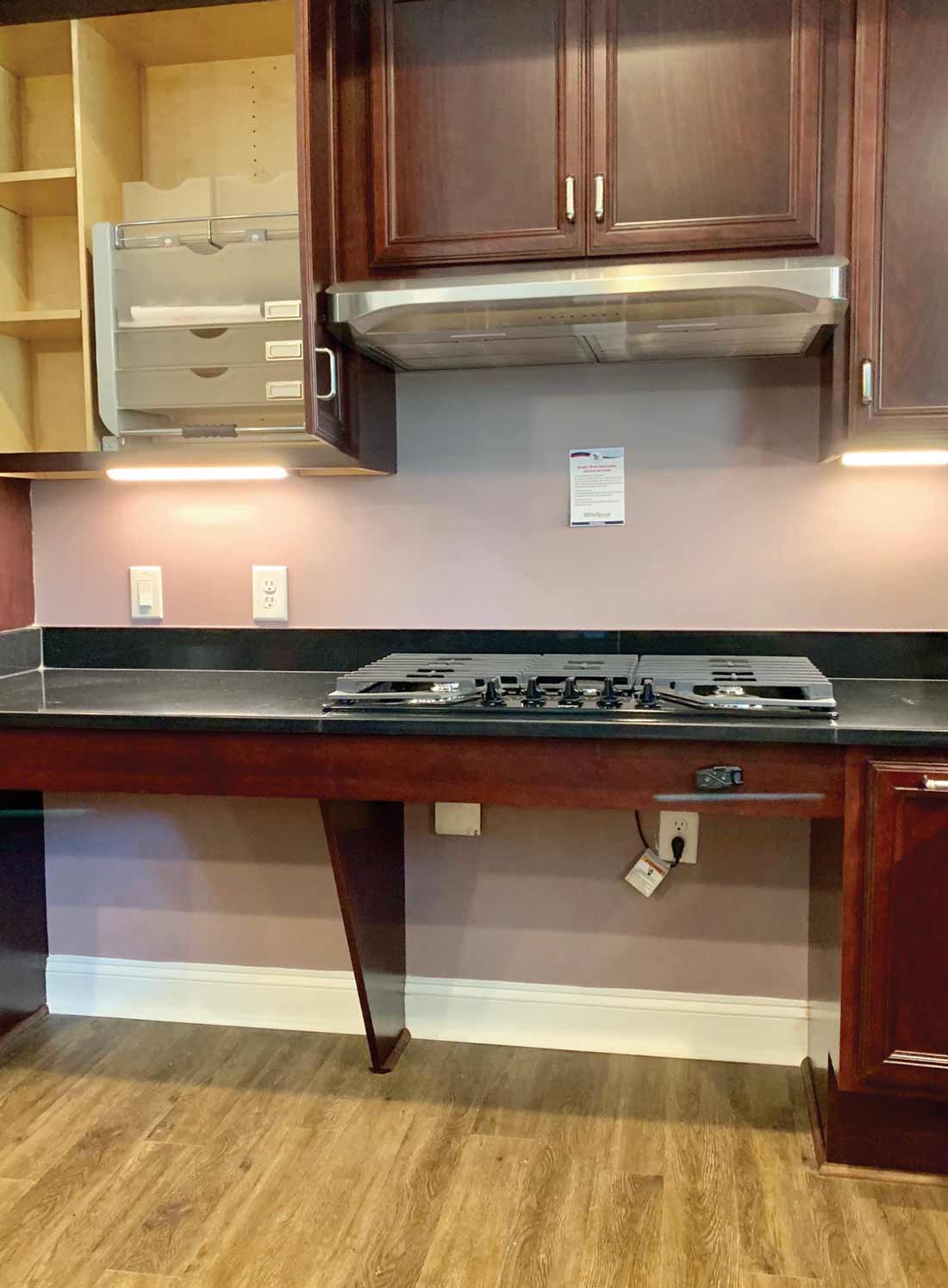 As of January, HFOT has provided 325 veterans with homes that go beyond being VA and ADA compliant. Each home bears the same design – 2,800 square feet of one-floor, open-concept living, with four bedrooms and two baths. The adapted floor plan features wider hallways and entry doorways; automatic door openers; roll-under sinks, stovetops and counters; pull-down shelving; sliding windows; digital temperature controls for water; roll-in showers; light switches positioned at wheelchair height and the list goes on. Chris’s house is gorgeous. Best of all, it’s paid for. His responsibilities extend to home insurance