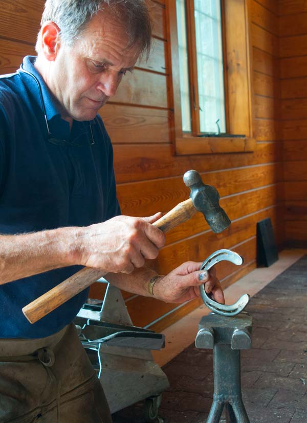 Farriers visit the farm on a weekly basis, as show horses need to be shod every four to six weeks, while the field horses need to have their hooves trimmed on a regular basis. Steve Teichman of Chester County Farrier Associates is a highly regarded farrier who specializes in creating custom shoes. He accompanied the United States Equestrian Team to Sydney for the 2000 Olympics.