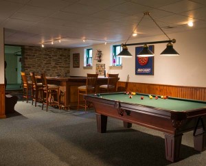 The basement of the wing built in 1999 is connected to the old basement through an opening in the original stone foundation. It’s used as a media and game room.